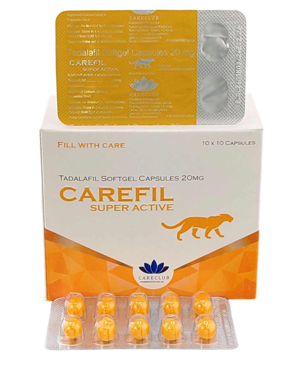 A Carefil Super Active két hatóanyagot tartalmaz: Tadalafil 20 mg. A tadalafil a PDE-5 gátlók csoportjába tartozik, és a pénisz barlangos testeiben található simaizmok ellazításával fokozza a véráramlást. Ennek hatására szexuális ingerlés mellett gyorsabban alakul ki a merevedés, amely erősebbé és tartósabbá válhat. A hatás jellemzően 30–45 percen belül jelentkezik, és több 10 órán keresztül is fennállhat.