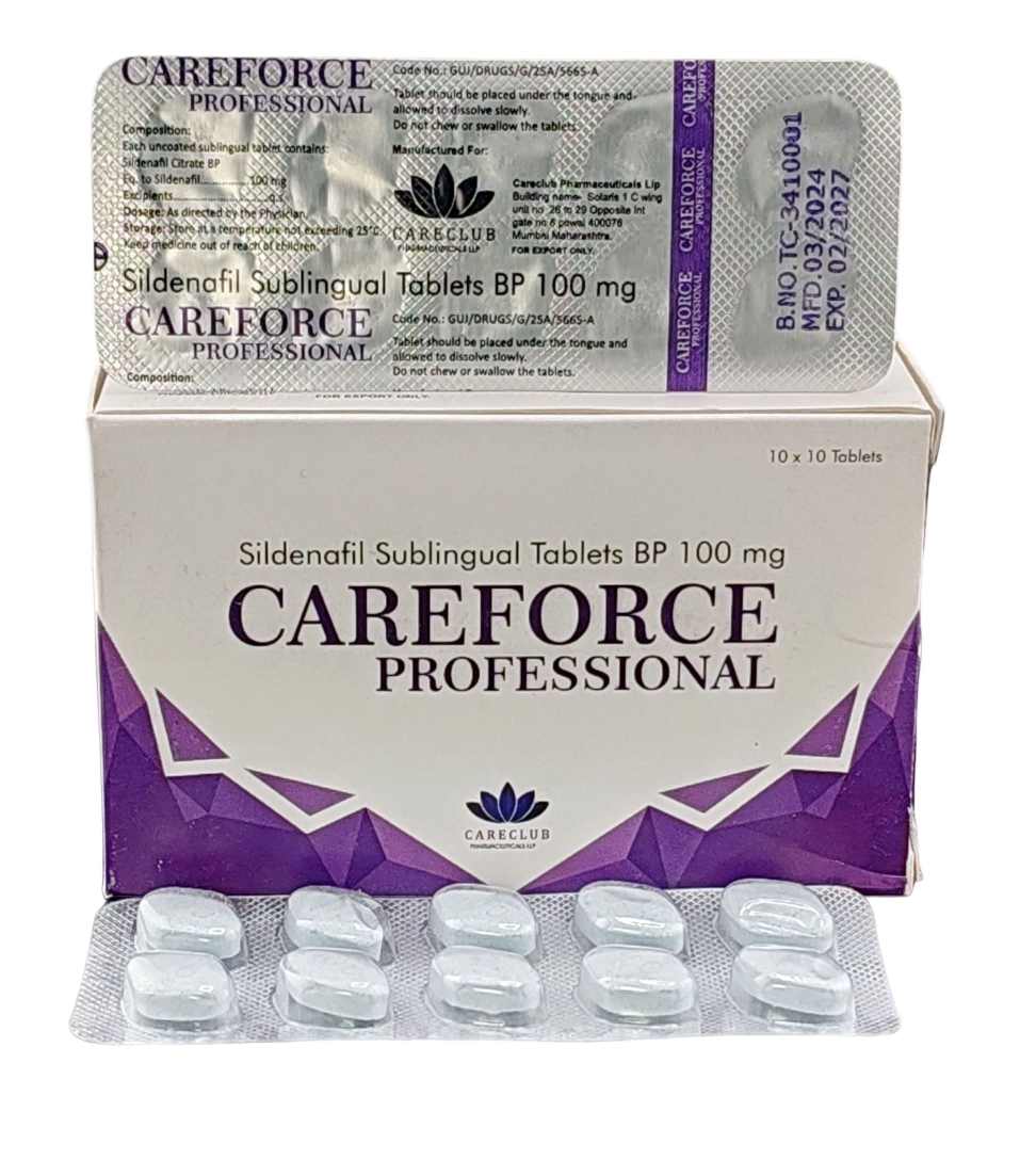 A Careforce Professional hatóanyaga a Sildenafil 100 mg, amely a PDE-5 gátlók csoportjába tartozik. A sildenafil a pénisz barlangos testeiben található simaizmok ellazításával javítja a véráramlást, ezáltal elősegítve az erekció gyors kialakulását és hosszú távú fenntartását. Az alkalmazásával a szexuális izgalom hatására az erekció erősebbé válik, és hosszabb ideig is tarthat.